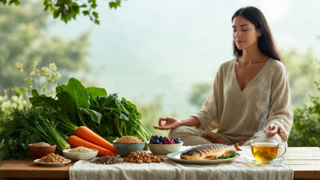 Najlepsza dieta przy nerwicy lękowej to styl śródziemnomorski lub MIND – bogata w produkty przeciwzapalne, wspierające produkcję serotoniny i GABA oraz stabilizujące poziom cukru.